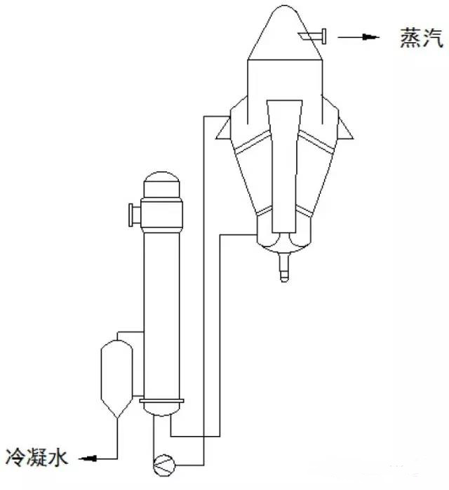 濃縮液落入下管箱,二次蒸汽進(jìn)入氣液分離器。在氣液分離器中二次蒸汽夾帶的液體飛沫被去除,純凈的二次蒸發(fā)從分離器中輸送到壓縮機(jī)。壓縮機(jī)把二次蒸汽壓縮后作為加熱蒸汽輸送到換熱器殼程用于蒸發(fā)器熱源。實現(xiàn)連續(xù)蒸發(fā)過程。